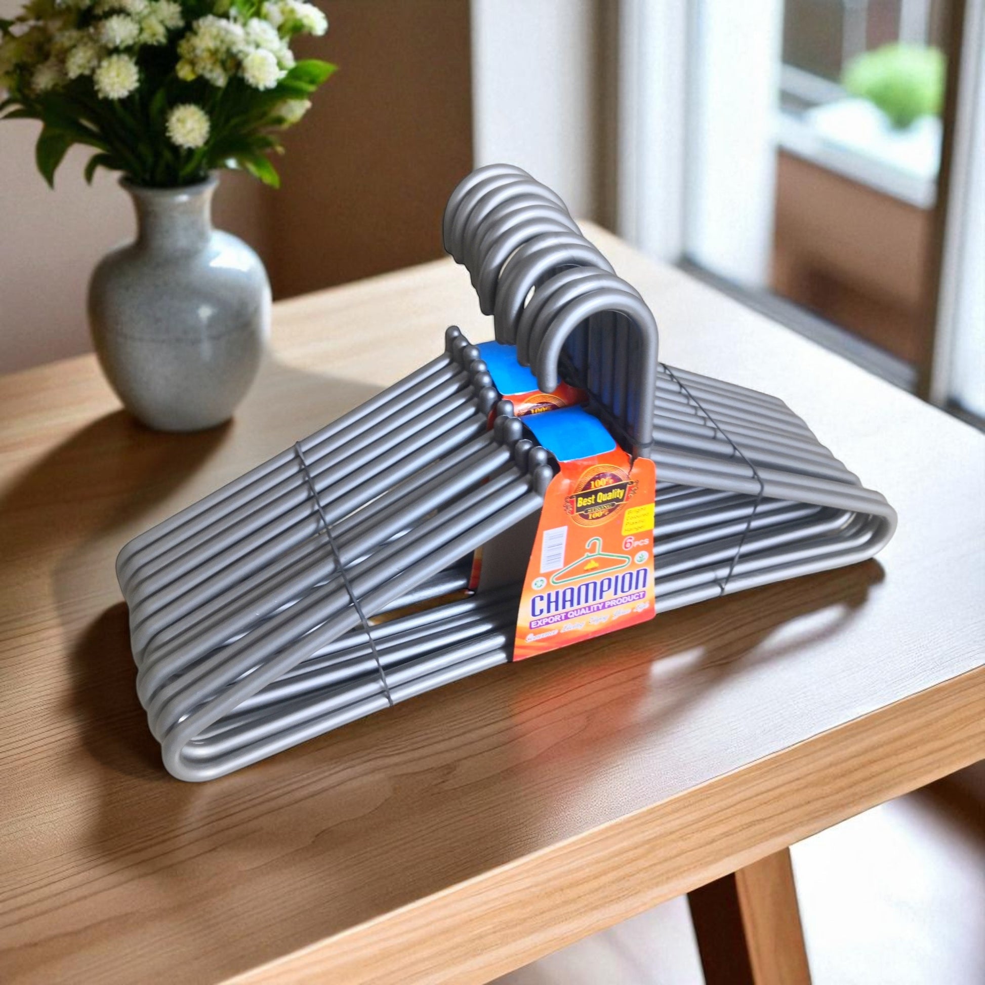 Upgrade your wardrobe with the Champion Export Quality Hangers made from pure plastic material in a bright and shiny white finish. These hangers are durable, stylish, and designed to keep your clothes well-organized and wrinkle-free. Perfect for shirts, trousers, dresses, and daily wardrobe use.