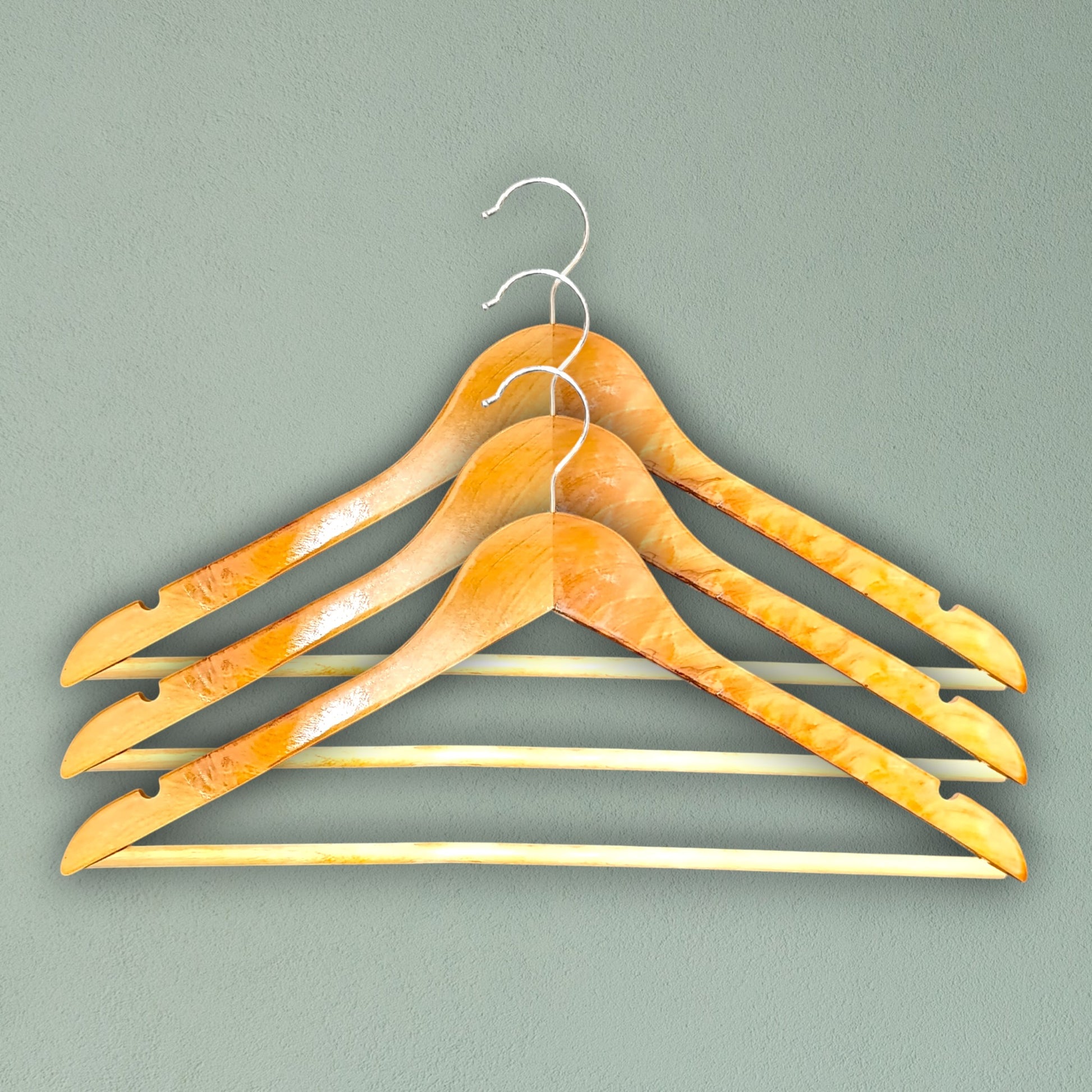 - Premium-quality polished wooden hangers